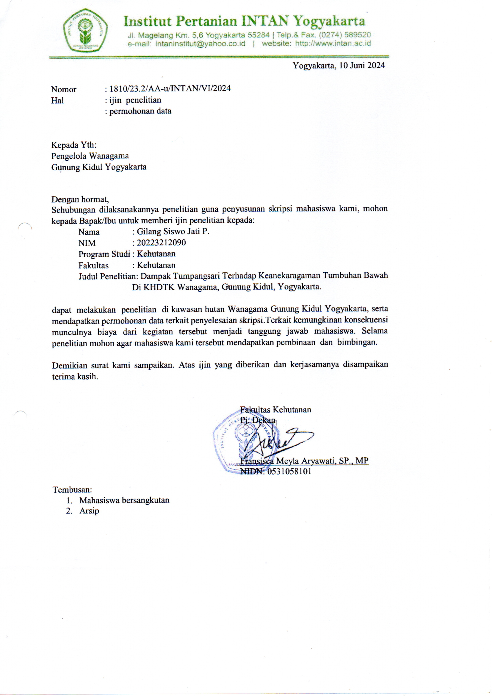 Penelitian Mahasiswa INTAN Yogyakarta an. Gilang Siswo