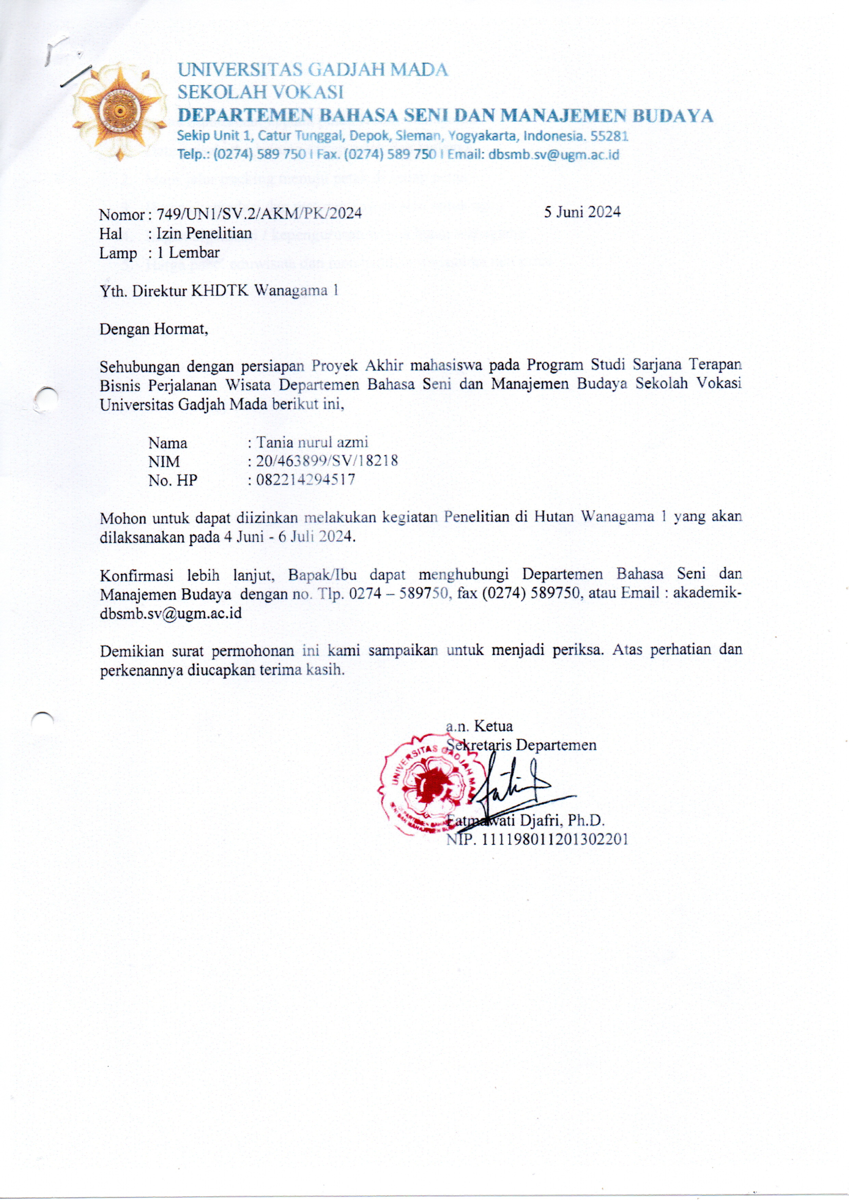 Penelitian Mahasiswa an. Tania Nurul